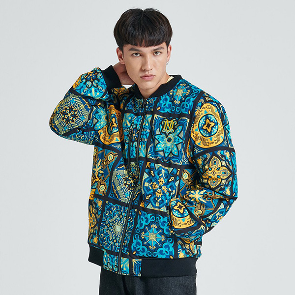 Bomber Maioliche Dolly Noire, Secondo Drop Della Collezione FW’21 intitolata Bellissima Italia; il Bomber riprende le tipiche stampe Retrò, con toni sul celeste e Tema Maioliche; per poi passare alle parte interna (double face) completamente total black. Spicca il tessuto resistente ad acqua e vento. In questa collezione Dolly Noire ha voluto richiamare temi del nostro amato Paese.. L’Italia..