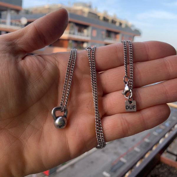 Collana Kettlebell di Double U Frenk Creata in acciaio Zamac per i veri sportivi.
