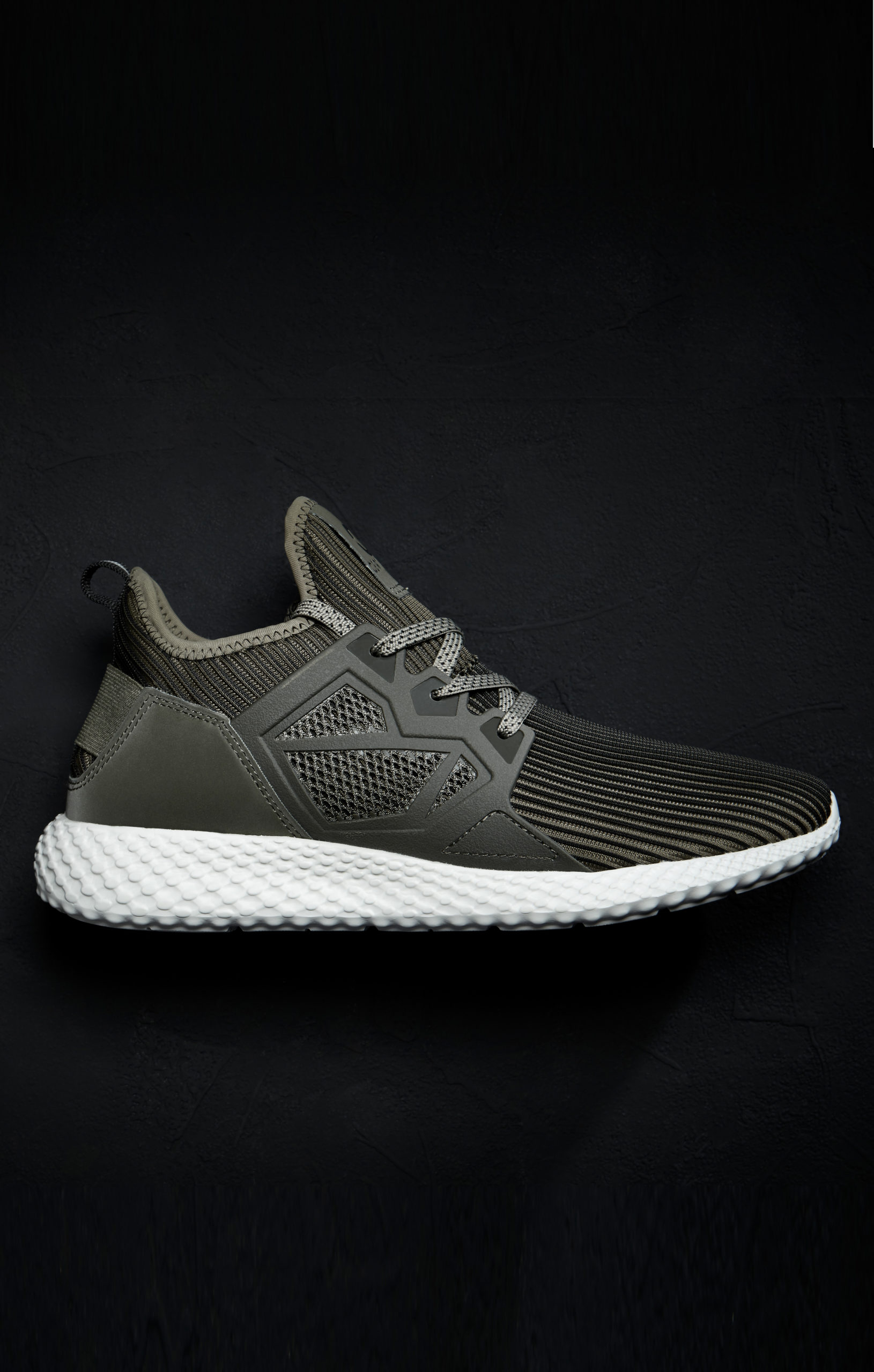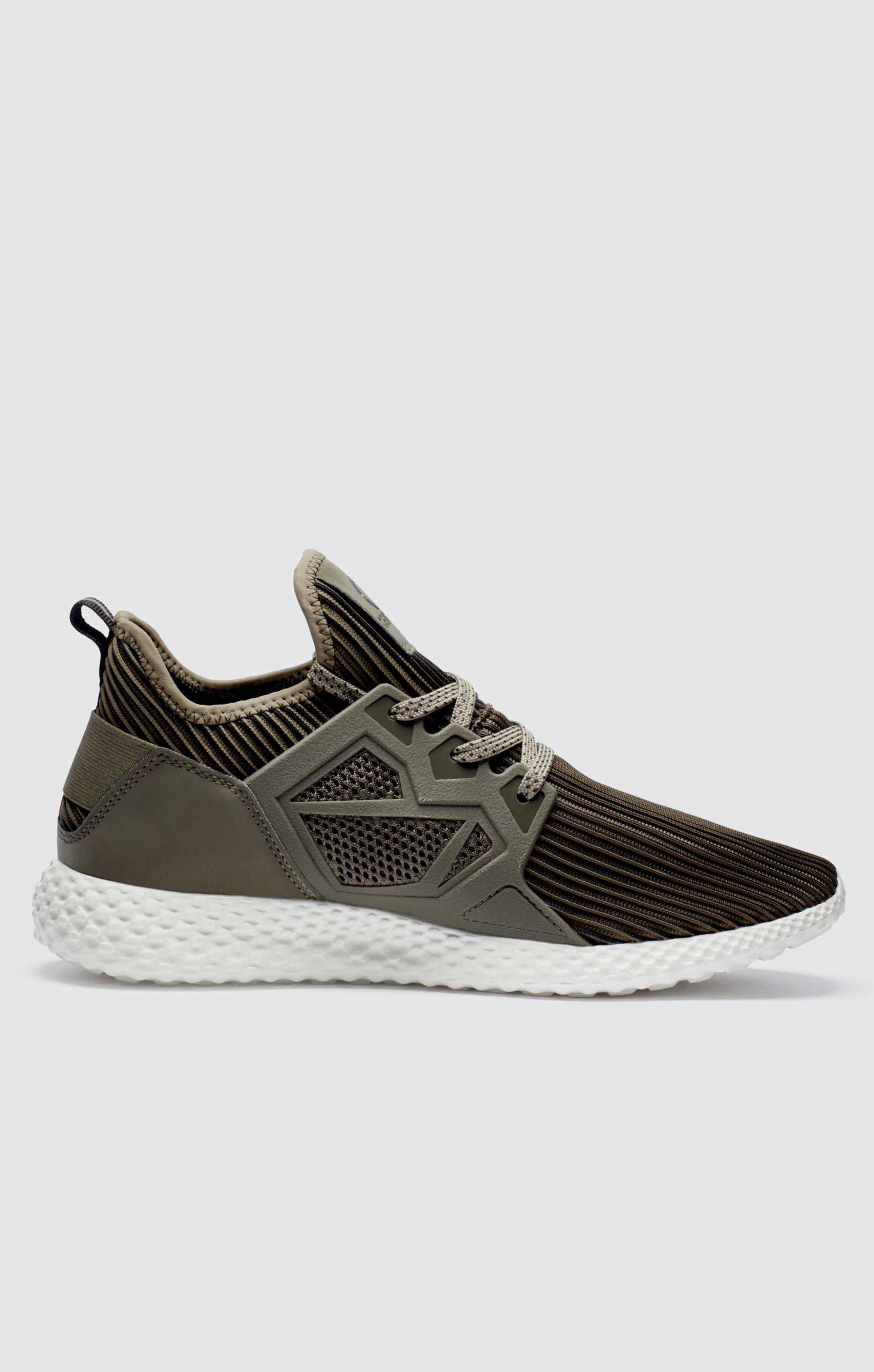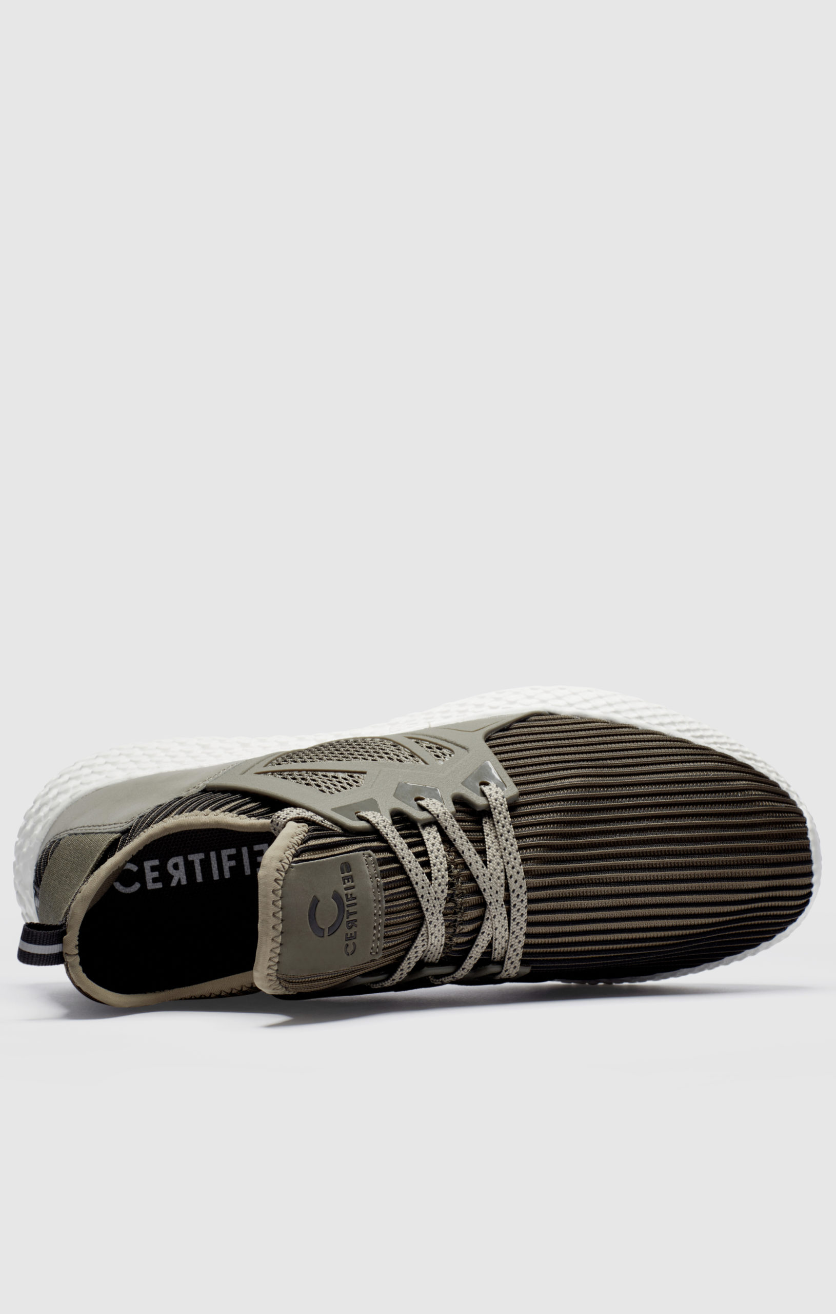 Scarpa Certified London di colore verde e bianco con tomaia in mesh a coste traspirante, costruzione a calzino, design a gabbia di sostegno, suola in gomma morbida per migliorare il comfort.