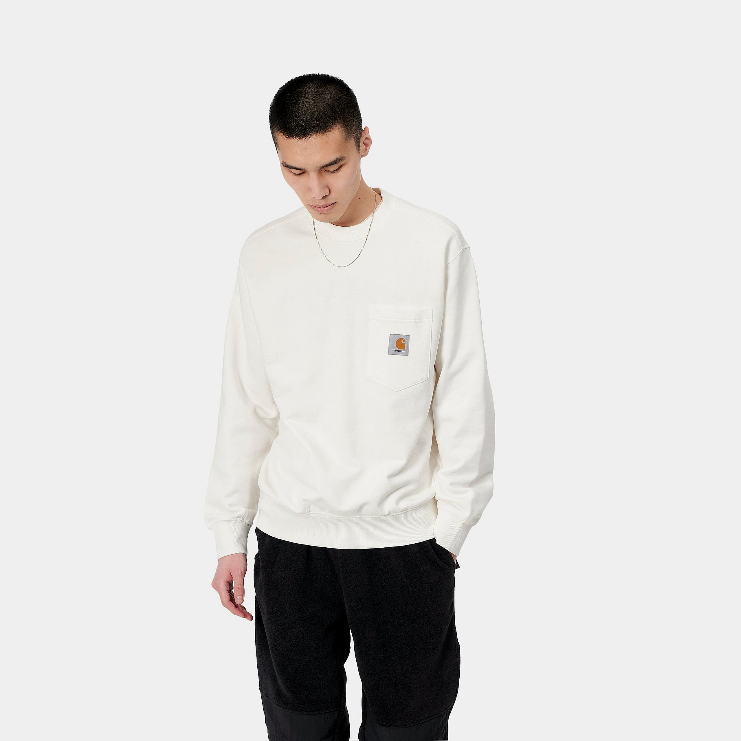 Felpa Pocket Wax Carhartt è una felpa con tasca, basata sulla nostra classica t-shirt con taschino; ma qui realizzata in jersey di cotone pesante da 13,3 once. Questo pezzo è stato creato con una vestibilità ampia e leggermente squadrata. Presenta un’unica tasca sul petto, decorata con l’etichetta Carhartt WIP, colletto girocollo e dettagli a coste sia sull’orlo che sui polsini.